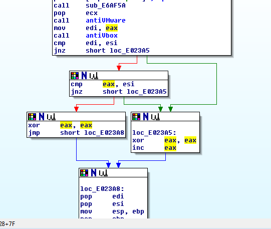 Tracing backwards, this allows us to identify the whole ‘AntiVM’ function: